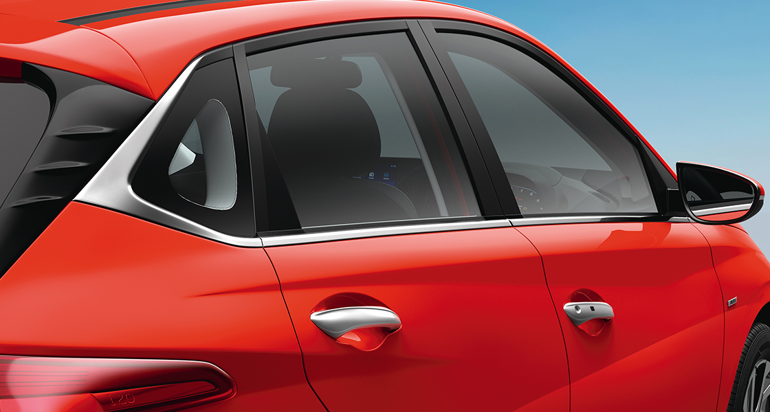 Chrome outside door handle adds to the new Hyundai i20 luxury profile and give you an easy grip.