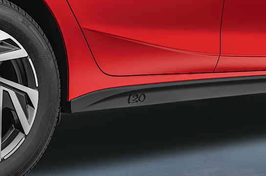 Glossy black side sill with i20 branding adds style to overall dynamic side profile.
